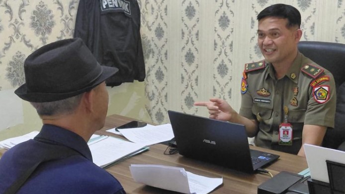 Kasat Pol PP Kotamobagu Sahaya Mokoginta saat meminta klarifikasi ke salah satu pengusaha cafe di ruang kerjanya, Jumat (28/11/2025) (foto: Gie)