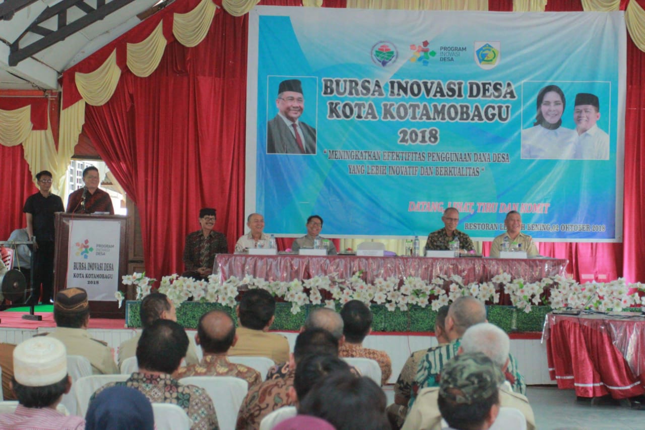 Hal tersebut sebagaimana yang disampaikan Wakil Walikota Kotamobagu, Nayodo Koerniawan, SH, saat membuka kegiatan Bursa Inovasi Desa, Selasa (2/10). “Kegiatan Bursa Inovasi Desa yang kita laksanakan pada pagi hari ini, merupakan program dari Kementerian Desa, Pembangunan Desa Tertinggal Dan Transmigrasi Republik Indonesia, sebagai upaya untuk mempercepat penanggulangan kemiskinan di daerah perdesaan, melalui pemanfaatan Dana Desa, secara lebih Berkualitas, Efektif, dan Inovatif, melalui strategi pengembangan kapasitas desa secara berkelanjutan, khususnya dalam bidang pengembangan ekonomi lokal dan kewirausahaan, pengembangan sumber daya manusia, pelayanan sosial dasar, serta Infrastruktur desa,” ujar Wakil Walikota.