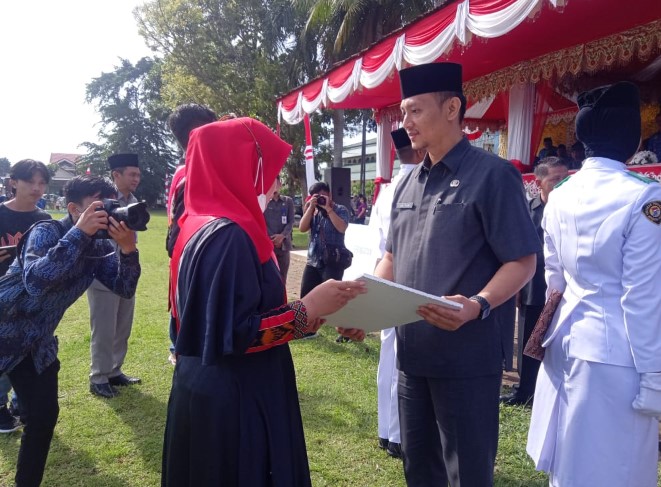 Dalam kesempatan ini, Wakil Wali Kota Nayodo Koerniawan juga menyerahkan sertifikat penghargaan kepada Paskibraka Kota Kotamobagu tahun 2022 serta piagam penghargaan bagi perwakilan pelatih lisensi D.