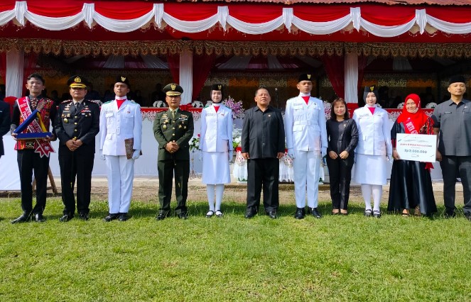 Dalam kesempatan ini, Wakil Wali Kota Nayodo Koerniawan juga menyerahkan sertifikat penghargaan kepada Paskibraka Kota Kotamobagu tahun 2022 serta piagam penghargaan bagi perwakilan pelatih lisensi D.