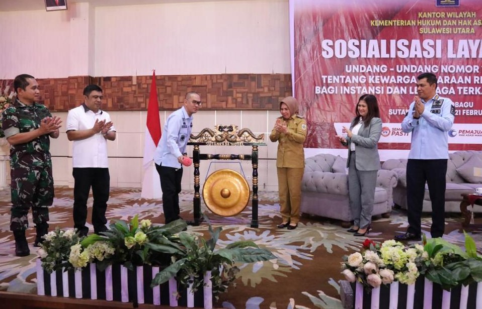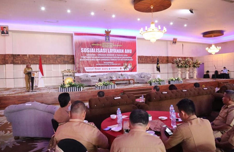 ADVERTORIAL, PEMKOT KOTAMOBAGU – Wali Kota Kotamobagu, Ir. Hj Tatong Bara menghadiri Sosialisasi Layanan Administrasi Hukum Umum (AHU) yang digelar Kantor Wilayah (Kanwil) Kemenkumham Sulut, di Sutan Raja Hotel Kotamobagu, Selasa (21/02/2023).