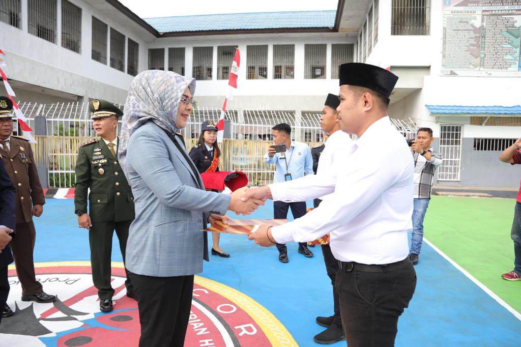 IKNews, Kotamobagu – Wali Kota Kotamobagu, Ir. Hj. Tatong Bara, memimpin Upacara Penyerahan Remisi Umum Tahun 2023 di Rutan Kelas II B Kotamobagu pada Kamis (17/8).
