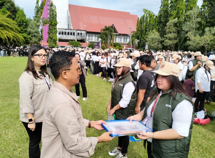 IKNews,Minsel – Komisi Pemilihan Umum (KPU) Minahasa Selatan Gelar Apel Akbar Coklit dan Pelantikan Petugas Pemutakhiran Data Pemilih (Pantarlih) untuk Pilkada Tahun 2024, Senin (24/6/2024) di halaman Kantor Bupati Minsel.