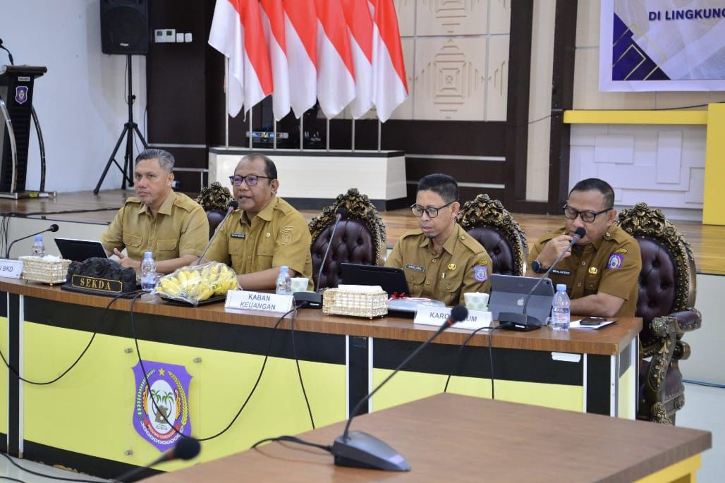 Gambar Sekretaris Daerah Provinsi Gorontalo, Sofian Ibrahim, memberikan penjelasan tentang penerapan sistem e-TPP dalam kegiatan sosialisasi di Rumah Jabatan Gubernur. Sistem ini dirancang untuk meningkatkan transparansi dan akuntabilitas pengelolaan tunjangan kinerja ASN berbasis prestasi dan disiplin kerja. Foto: Adit/IKN.