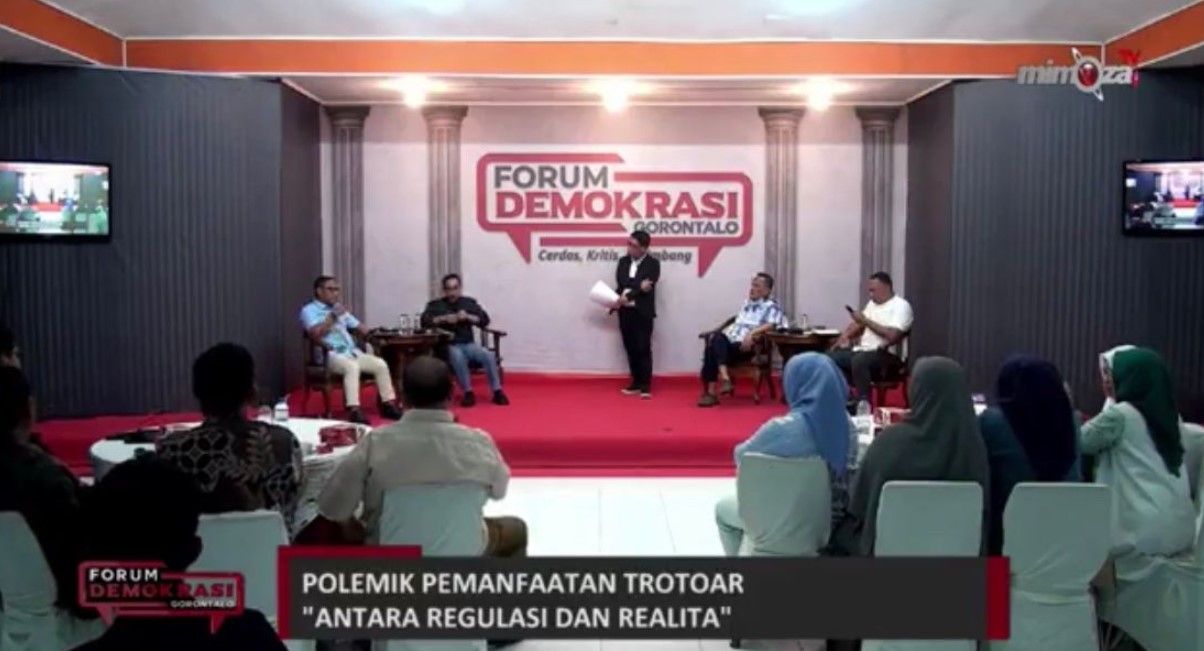 IKNews, GORONTALO – Forum Demokrasi Gorontalo (FDG) yang digelar pada Senin, 20 Oktober 2025, menghadirkan momen menarik ketika Wali Kota Gorontalo, Adhan Dambea, terlihat duduk di barisan paling depan menyimak secara seksama pemaparan narasumber terkait pemanfaatan trotoar jalan.