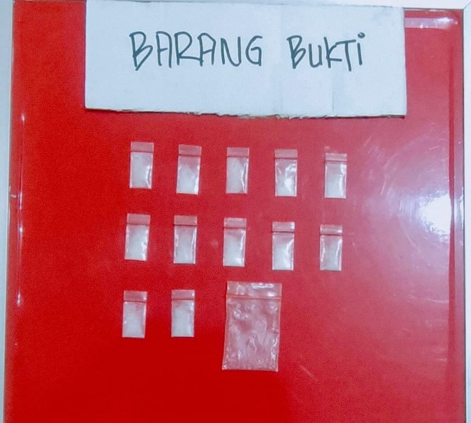 Dari tangan Tulang, petugas menyita 12 bungkus plastik klip kecil berisi sabu dengan berat total 2,76 gram bruto, serta satu bungkus plastik klip kosong ukuran sedang yang diduga digunakan untuk mengemas sabu dalam skala kecil.