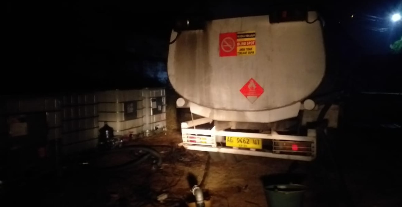 Pantauan di lokasi menunjukkan adanya satu unit truk tangki, empat buah tandon berukuran jumbo, satu truk tanpa muatan, dan satu truk lain yang membawa muatan mirip sampah di bagian belakang area.