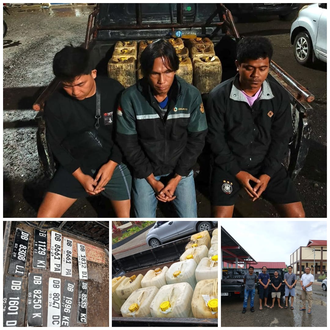 Tidak berhenti di situ, pada Selasa (7/10/2025), tim kembali mengamankan tiga terduga pelaku lainnya, yakni JR (44) warga Kotamobagu, serta LT (29) dan MM (29), keduanya warga Kalasey. Ketiganya tertangkap di Kelurahan Tumobui bersama 12 galon BBM jenis Solar yang masing-masing berkapasitas 25 liter.