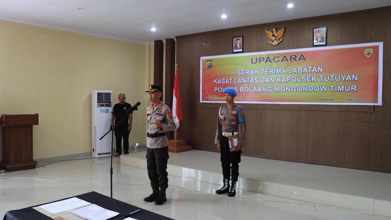 Berdasarkan Skep Kapolda Sulut : No.Kep /197/V/2024/tgl 06 Mei 2024, tentang mutasi dan jabatan, pejabat yang diserahterimakan yaitu Kasat Lantas AKP Robin Langi digantikan dengan IPTU Fitri Nugharani, S.Tr.K dan Kapolsek Tutuyan IPDA Ramon Ted Mandagi digantikan oleh IPDA Kadek Surya Darma, S.Tr. K .