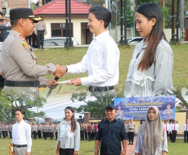 IKNews, Kotamobagu – Para pemenang Lomba Menulis Feature dalam rangka Hari Sumpah Pemuda 28 Oktober 2025 yang digelar Polres Kotamobagu resmi menerima piagam dan hadiah pada Senin, 17 November 2025. Penyerahan dilakukan langsung oleh Kapolres Kotamobagu AKBP Irwanto, SIK., MH., di lapangan apel Mapolres Kotamobagu.