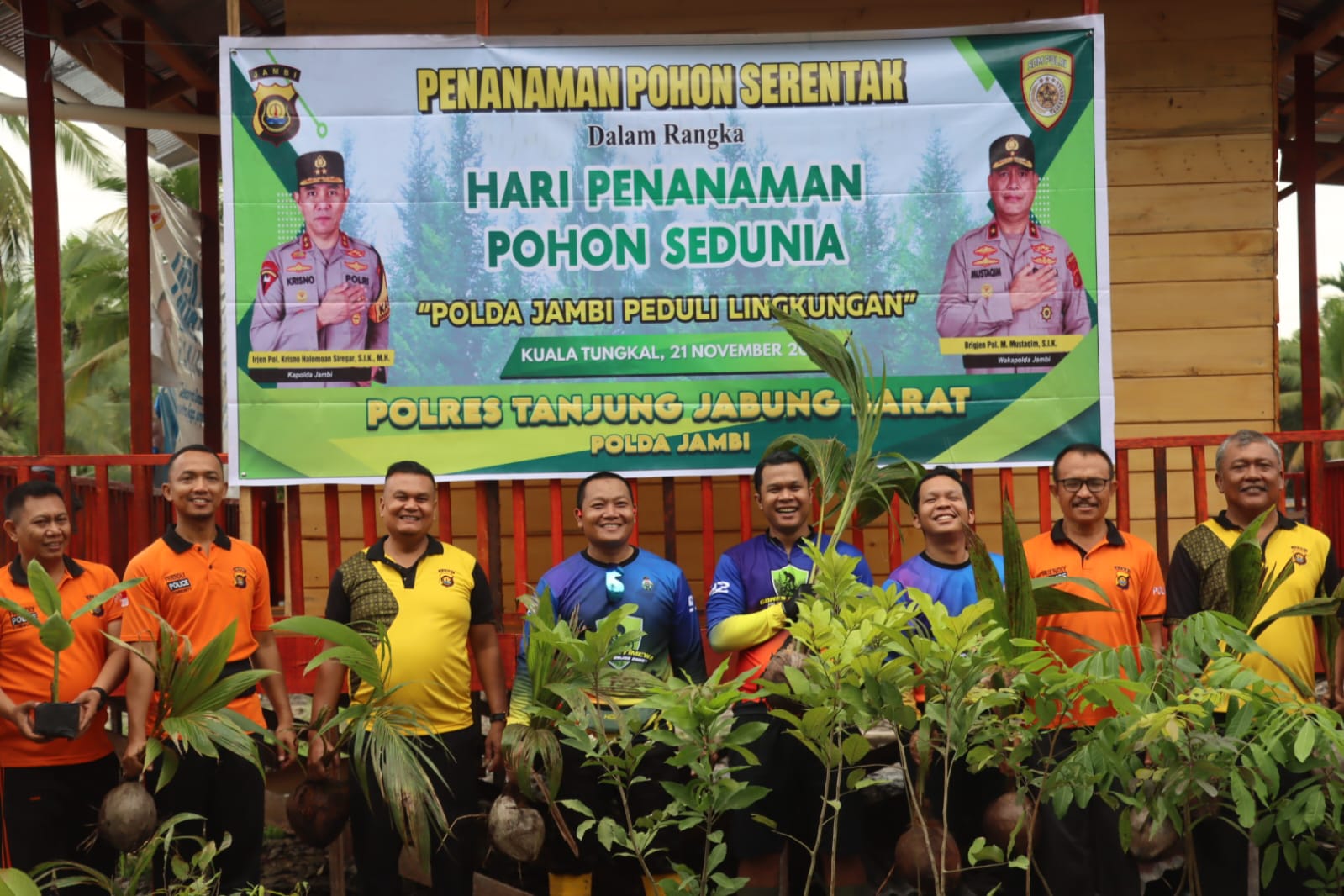 Kegiatan penanaman pohon tersebar di beberapa lokasi di wilayah hukum Polres Tanjab Barat. Selain memperingati Hari Pohon Nasional, aksi ini juga menjadi bagian dari program “Peduli Lingkungan” yang diinisiasi Polda Jambi.