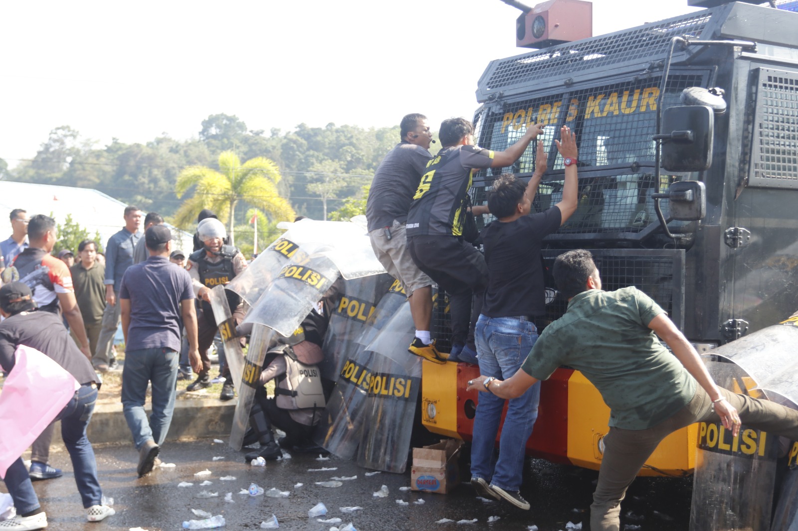 2. Masa dari Paslon A Yang awalnya Berjumlah lebih kurang 500 Orang setelah dilakukan penggalangan oleh Sat Intelkam Polres Kaur berkurang dan menjadi 300 orang namun massa tidak terbendung sehingga melakukan Unjuk rasa di Kantor KPUD Kaur, pembakaran Ban dan Aset milik Pemerintah Daerah Kabupaten Kaur.