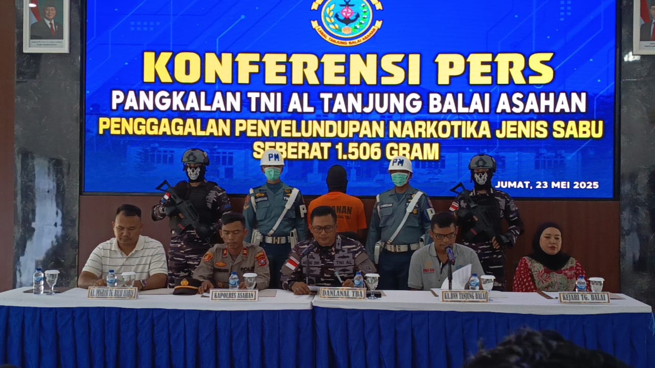IKNews, SUMUT –  TNI AL Tanjungbalai Asahan Gelar Konfrensi Pers Di Mako Lanal TBA Tanjungbalai Asahan Jumat (23/05/2025).