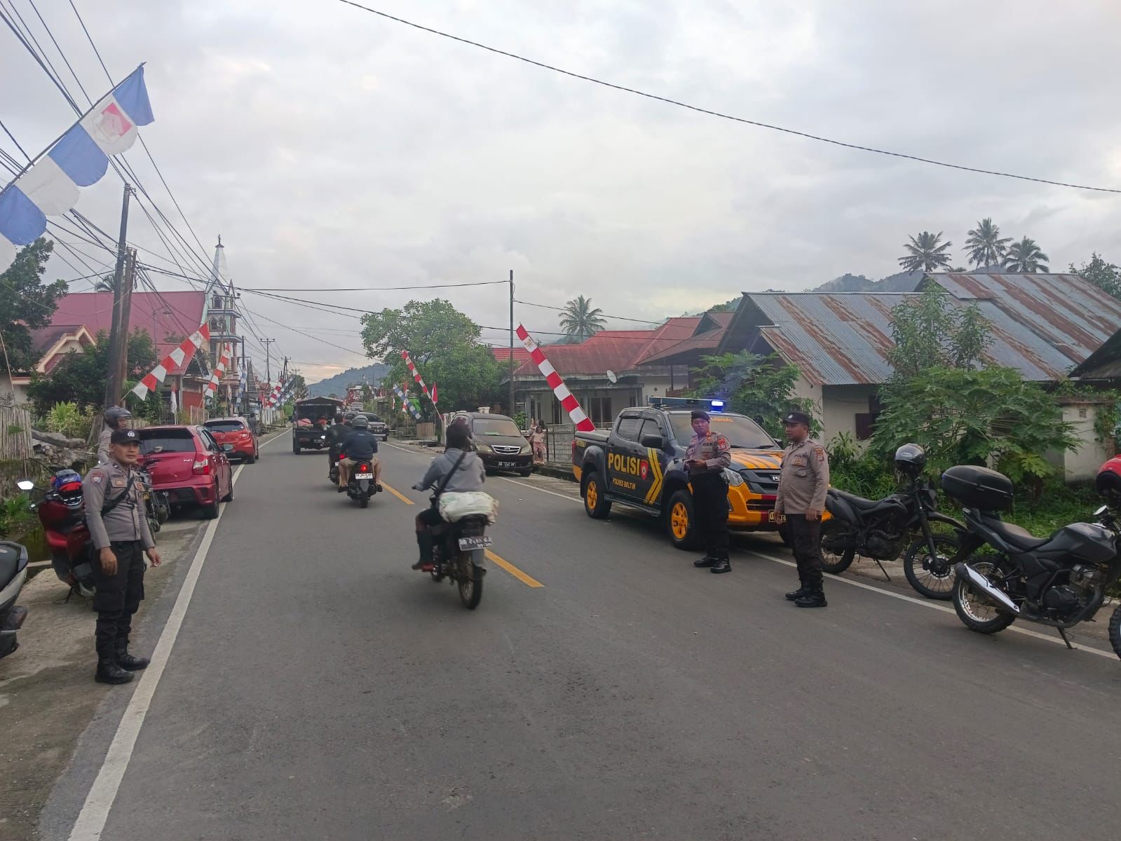 Personel melakukan pengamanan sejak kegiatan ibadah pagi di gereja-gereja kemudian melakukan pengaturan lalu lintas, penjagaan dan patroli di desa-desa yang melaksanakan pengucapan syukur.