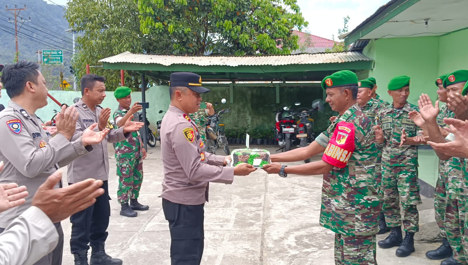 Kunjungan Polsek Modayag beserta rombongan ini disambut baik oleh Anggota TNi Koramil 1303 -03 Modayag serta menyerahkan kue hari ulang tahun secara simbolis serta diterima langsung serta Wirakarta Mamangkay.