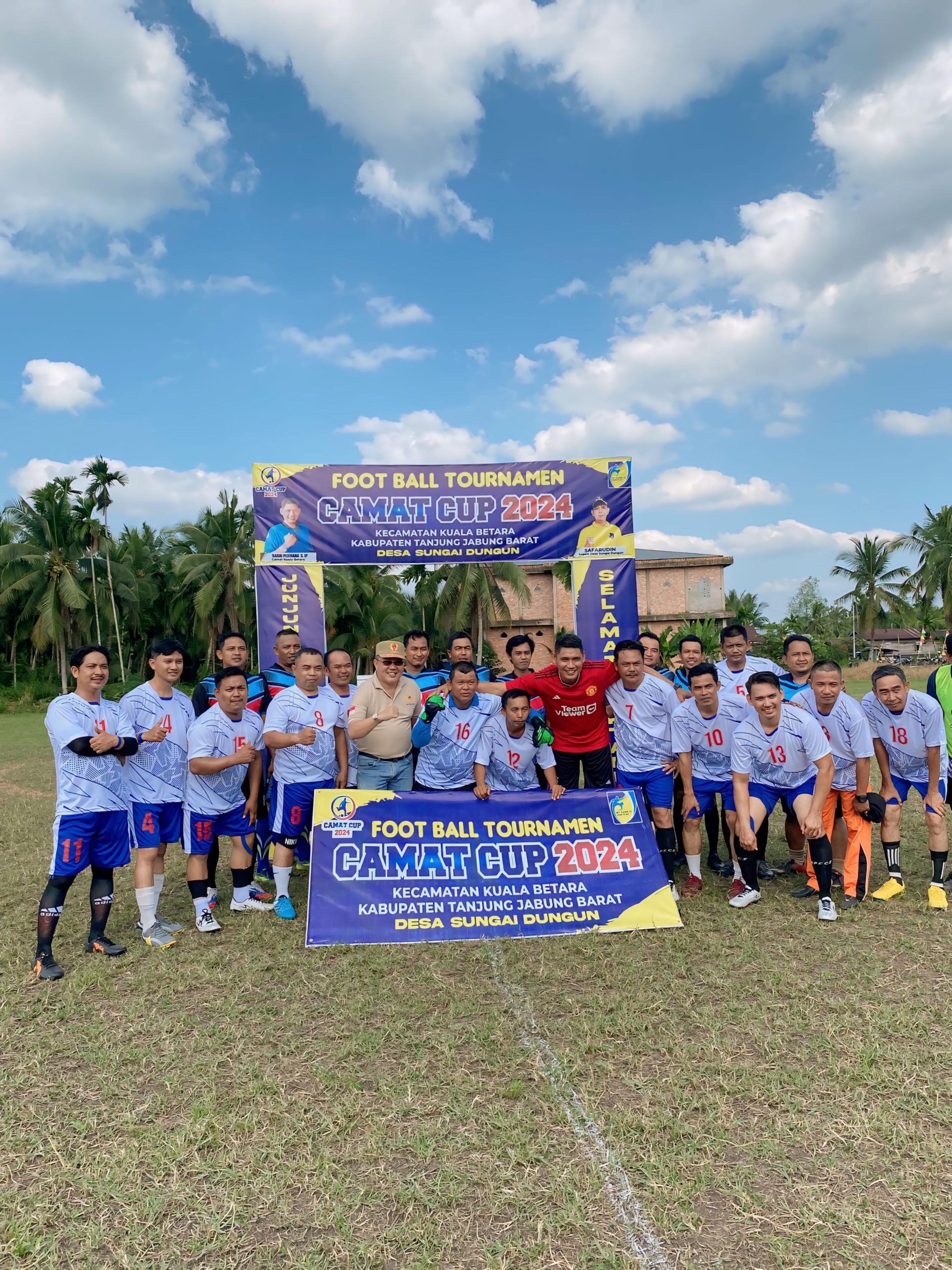 Camat Kuala Betara,Badai Permana S.IP, pada hari ini Rabu Sore 24 Juli 2024, resmi membuka Open Turnamen Sepak Bola Camat Cup tahun 2024 di Lapangan Sepak Bola Desa Sungai Dungun Kecamatan Kuala Betara, Kabupaten Tanjung Jabung Barat.