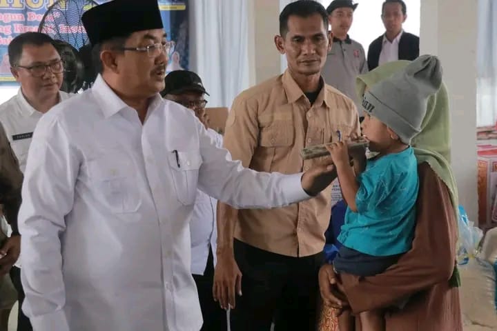IKNews, BETARA – Bentuk Kepedulian dan dedikasinya terhadap warga yang terdampak banjir, Bupati Tanjabbar Drs. H. Anwar Sadat, M.Ag, menyalurkan bantuan kepada korban di Desa Muntialo, Desa Lubuk Terentang, Desa Serdang Jaya, dan Desa Pematang Lumut, Kecamatan Betara, Kabupaten Tanjung Jabung Barat, Jambi, Rabu (6/3/2024).