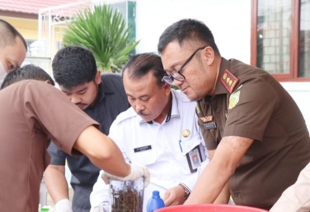 IKNews, KUALATUNGKAL – Wakil Bupati Tanjab Barat H. Hairan, SH menghadiri dan mengikuti Rangkaian kegiatan Pemusnahan Barang Bukti perkara tindak pidana umum yang telah mempunyai kekuatan hukum tetap (inkrah) di kantor Kejari Kuala Tungkal, Provinsi Jambi,Rabu (7/2/2024).