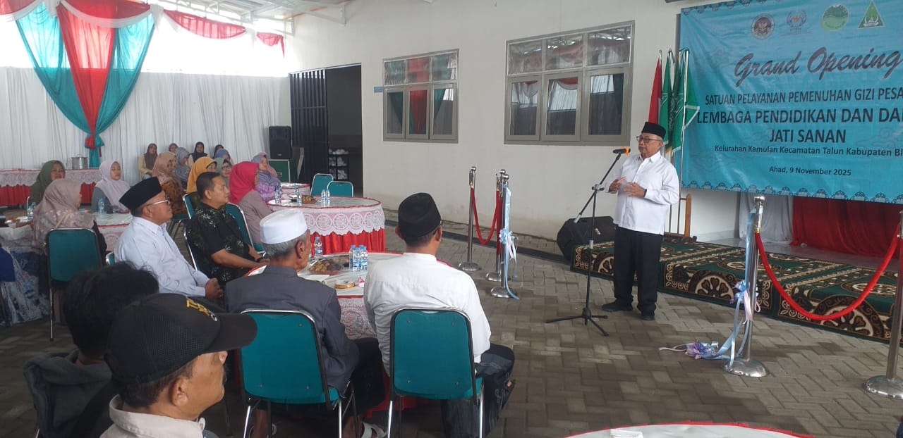 IKNews, BLITAR – Guna mendukung kelancaran program Makan Bergizi Gratis (MBG) di Kabupaten Blitar, Bupati Kabupaten Blitar, Drs. H. Rijanto, M.M, menghadiri Grand Opening Satuan Pelayanan Pemenuhan Gizi Pesantren, Minggu pagi (09/11/25), di kelurahan Kamulan, kecamatanTalun, kabupaten Blitar.