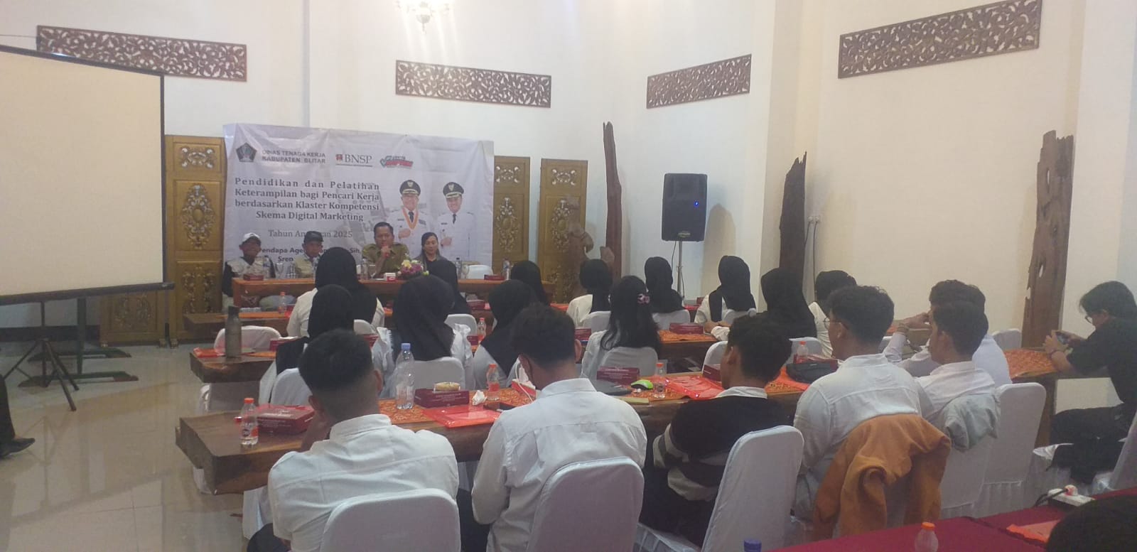 IKNews, BLITAR – Disnaker Kabupaten Blitar hari ini mengadakan kegiatan pembukaan Pendidikan dan Pelatihan keterampilan bagi pencari kerja berdasarkan klaster kompetensi skema digital marketing, pada tanggal (06/5/2025), pukul 09.00 WIB, yang dibiayai oleh DBHCHT Tahun 2025. Acara diadakan di Rest Area Hand Astasih Srengat Kabupaten Blitar.