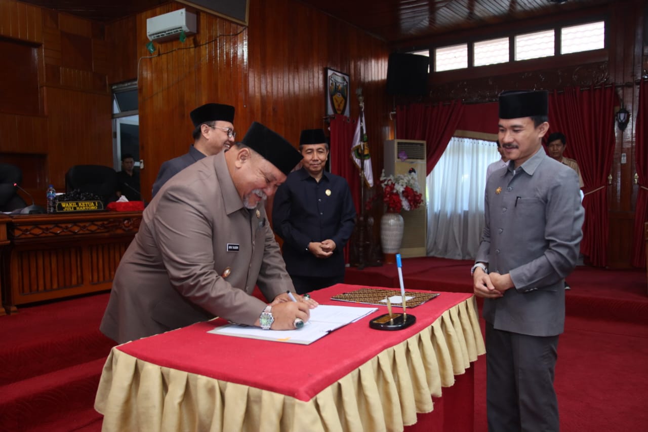 Rapat paripurna pengesahan dua raperda tersebut dipimpin oleh Wakil Ketua I DPRD Bengkulu Selatan, Juli Hartono, S.E, M.A.P, didampingi Ketua DPRd, Barli Halim, S.E. Serta diikuti Anggota DPRD dari semua unsur fraksi.