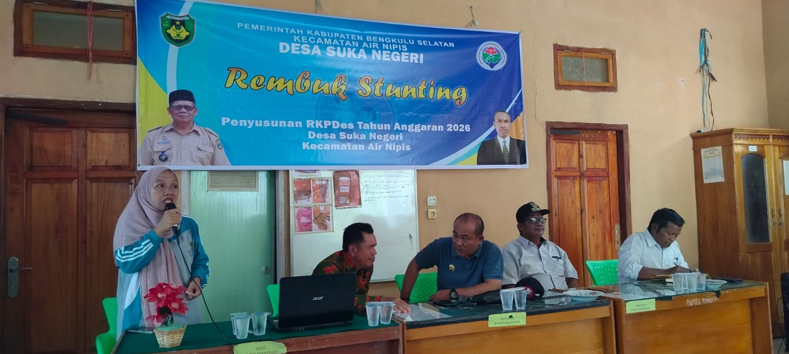 IKNews, BENGKULU SELATAN – Pemerintah Desa Suka Negeri, Kecamatan Air Nipis, Kabupaten Bengkulu Selatan, terus memperkuat langkah konkret dalam mencegah stunting melalui intervensi gizi dan pengelolaan data berbasis desa. Kepala Desa Yaruddin menegaskan bahwa pendekatan intervensi gizi spesifik harus diperkuat dengan dukungan kader yang aktif dan terlatih.