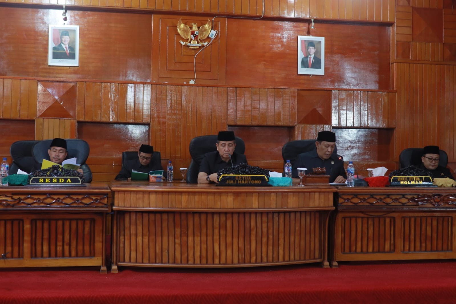 Rapat paripurna dipimpin Ketua DPRD Bengkulu Selatan, Juli Hartono, S.E, M.A.P didampingi Wakil Ketua I, Holman, S.E, dan Wakil Ketua II, Dodi Martian, S.Hut, M.M. Serta diikuti Anggota DPRD Bengkulu Selatan dari semua unsur fraksi.