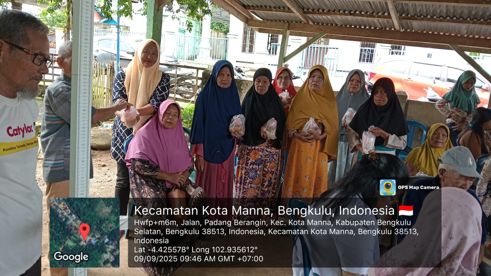 Kader Posyandu bersama warga saat melaksanakan kegiatan Posyandu ibu hamil, balita, dan lansia di Kantor Desa Padang Berangin, Kecamatan Kota Manna, Kabupaten Bengkulu Selatan, pada Selasa, 9 September 2025. Foto oleh: Fixy