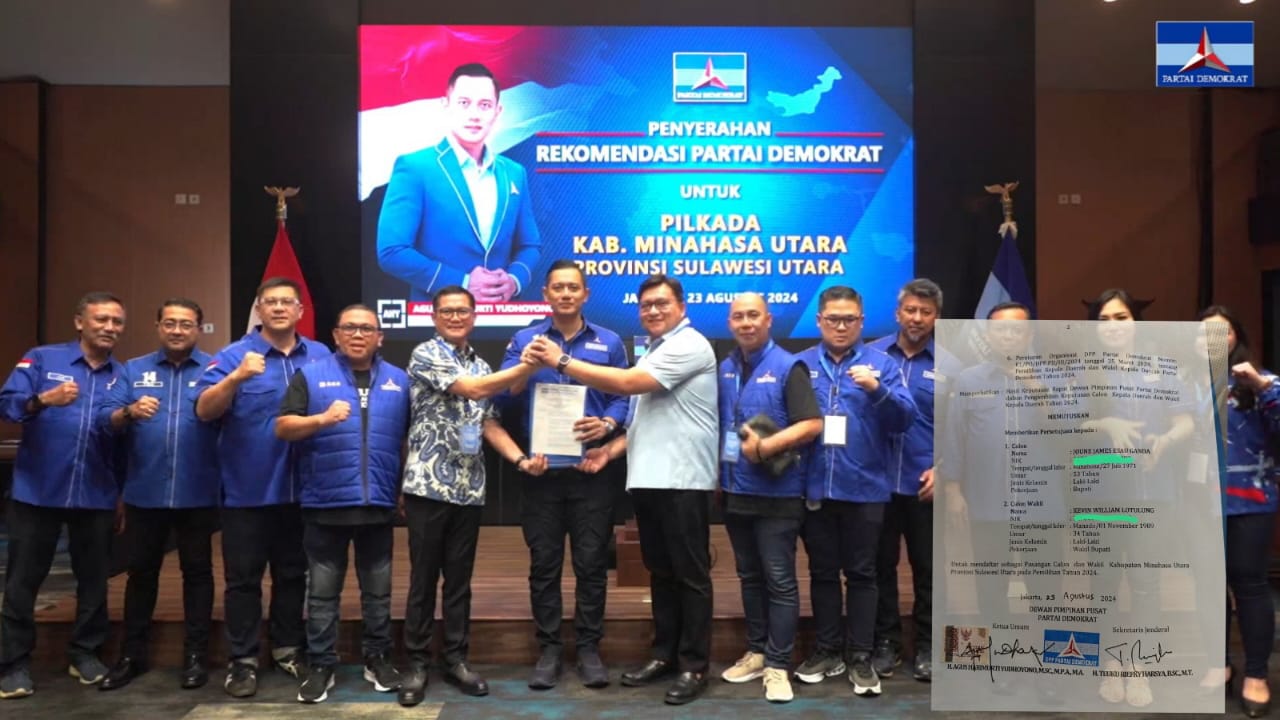 Terkini, Joune – Kevin kembali mengantongi B1 KWK oleh DPP Partai Demokrat untuk maju di Pilkada Minahasa Utara (Minut) 2024.
