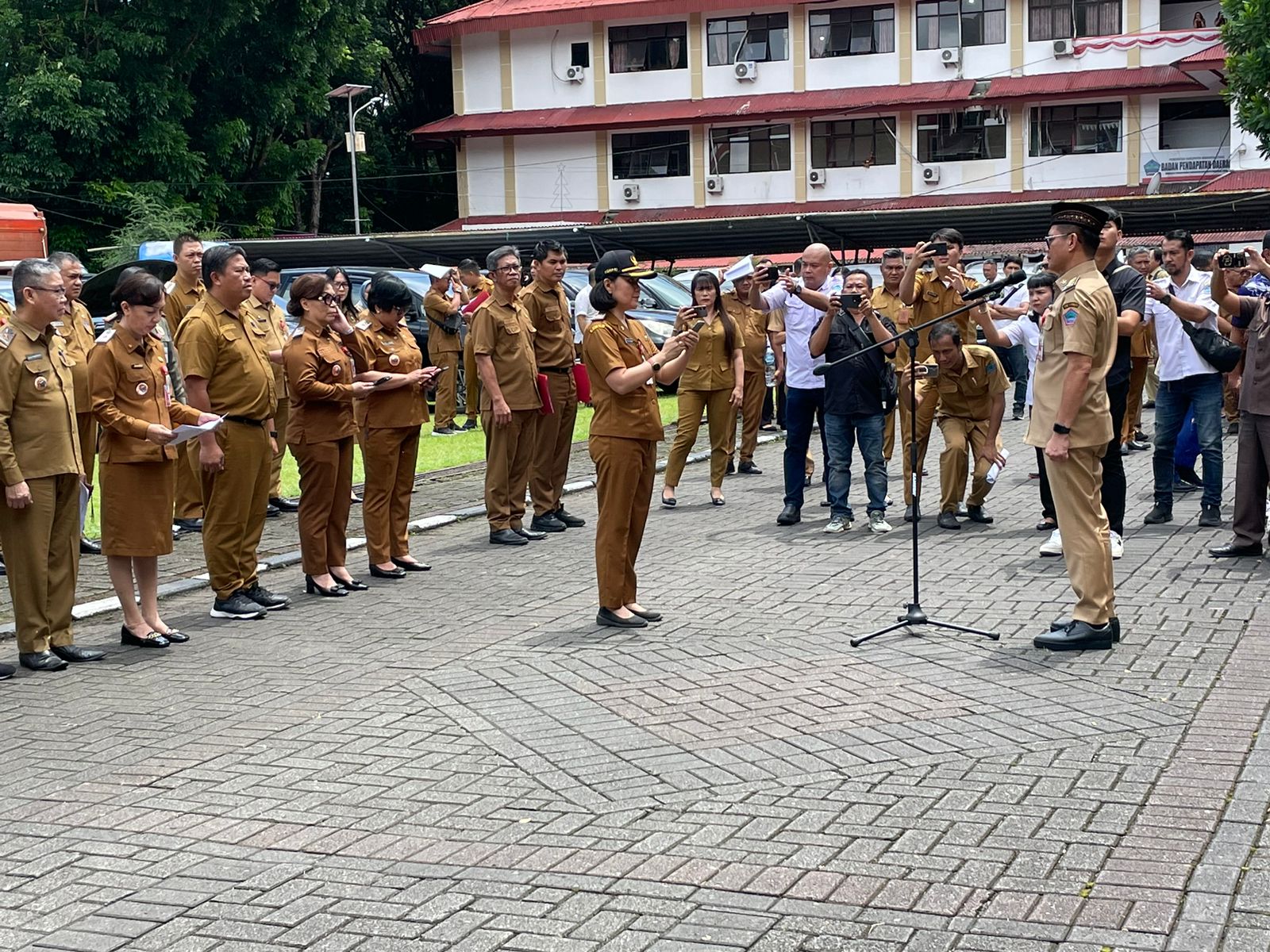 Secara bergantian kepala OPD menyampaikan laporan, aset kendaraan kepada Bupati Joune J E Ganda.