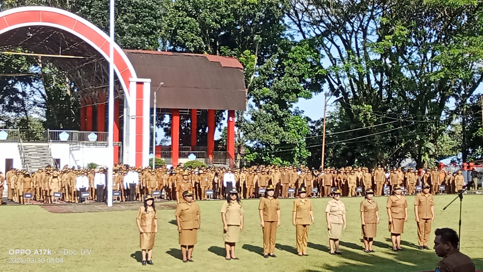 IKNews, MINUT – DR. Joune James Esau Ganda. SE, MAP, MM, M.Si, Bupati Kabupaten Minahasa Utara memimpin apel perdana usai libur panjang, cuti bersama dalam rangka memperingati Hari Raya Idul Fitri 1 Syawal 1447 Hijriah, di lapangan Kantor Bupati Minut, Senin.30/03/2026.