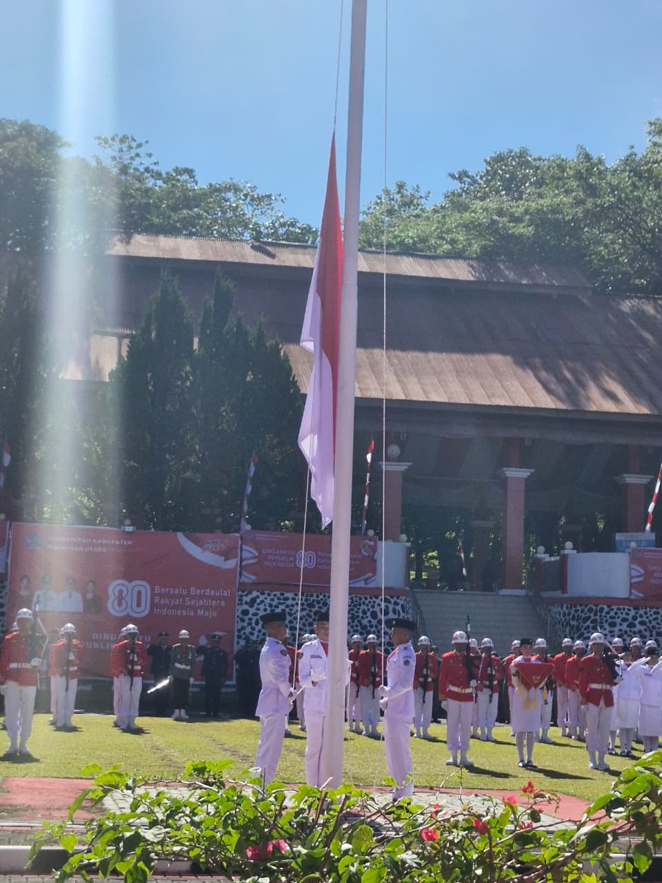 “Selamat kepada Pasukan Pengibar Bendera. Kalian telah menjalankan tugas ini dengan luar biasa dan membanggakan,” ujar Bupati saat sesi foto bersama usai upacara.