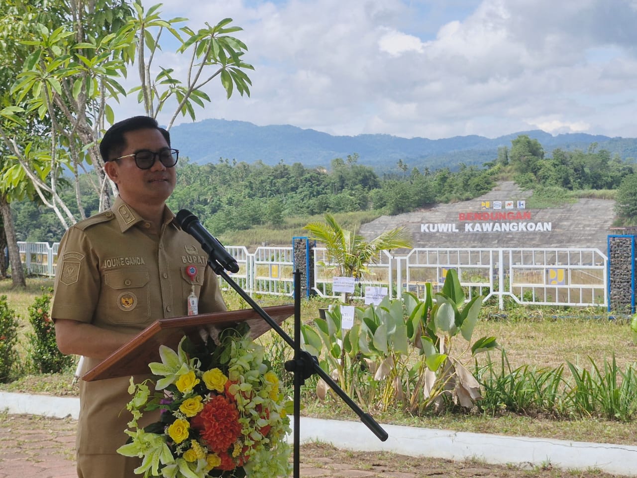 Bupati Joune Ganda dalam sembutannya memberikan apresiasi dan rasa penghargaan yang luar biasa kepada Kejari Minut yang telas menginisiasi kegiatan penanaman pohon di lokasi Bendungan Kuwil ini.