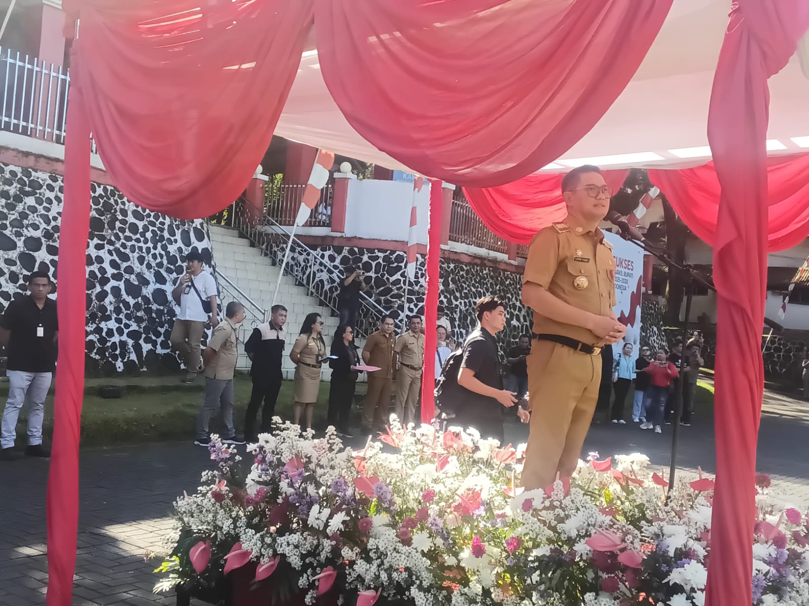“Dalam situasi geopolitik internasional yang penuh ketidakpastian seperti saat ini, kita dituntut untuk semakin mandiri dan berdiri di kaki sendiri. Hanya dengan disiplin dalam melaksanakan tugas dan tanggung jawab kita bisa bertahan menghadapi tantangan ini,” ujar Bupati Ganda.