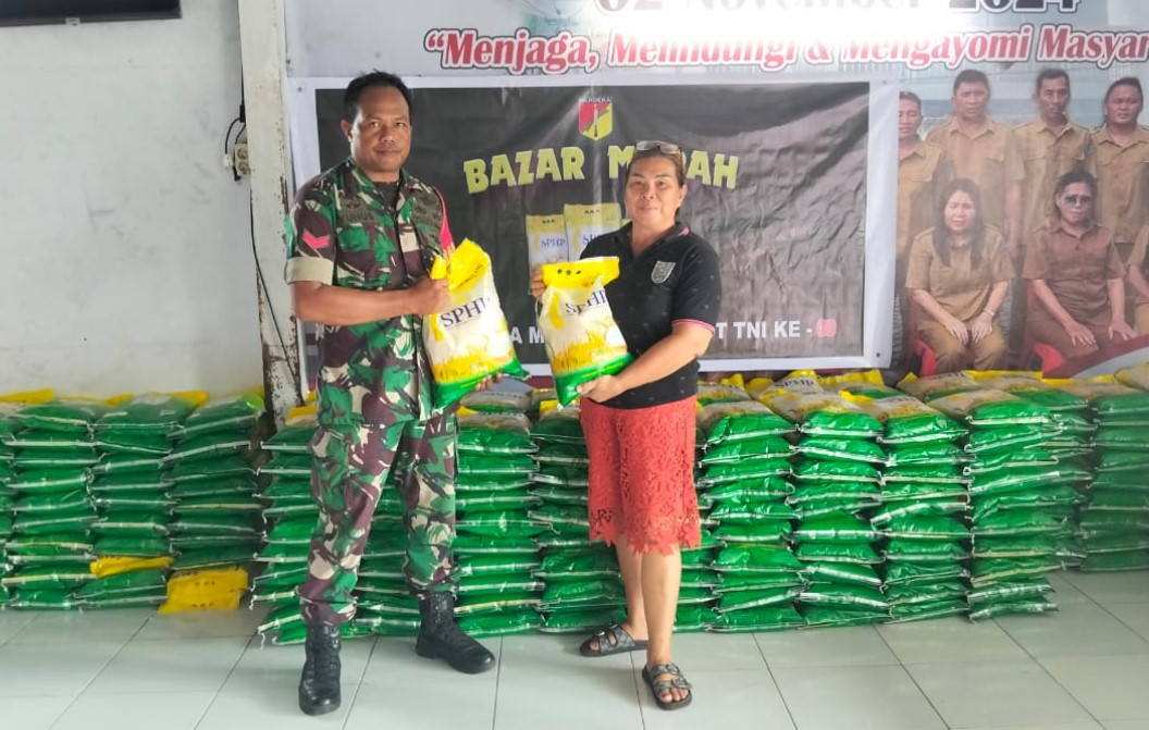 Dalam kegiatan bertajuk “Gerakan Pangan Murah” yang digelar Kodim 1310-04 Dimembe bekerja sama dengan Bulog, sebanyak 2 ton beras disalurkan kepada warga dengan harga subsidi. Tak hanya menjual, anggota TNI tampak membantu ibu-ibu mengangkat beras, mencatat data pembeli, bahkan memberikan air minum kepada lansia yang kepanasan.