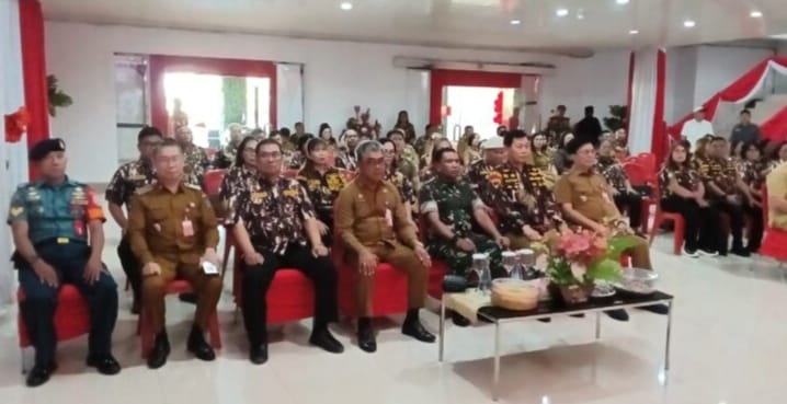 Gambar: Ketua GM-FKPPI Sulut Drs. Victor Mailangkay resmi melantik pengurus GM-FKPPI XXII Minut di Atrium Kantor Bupati Minahasa Utara, Selasa, 26 Agustus 2025. Acara ini dihadiri oleh sejumlah pejabat TNI-Polri, pemerintah daerah, dan tokoh masyarakat. (Foto: Denny).