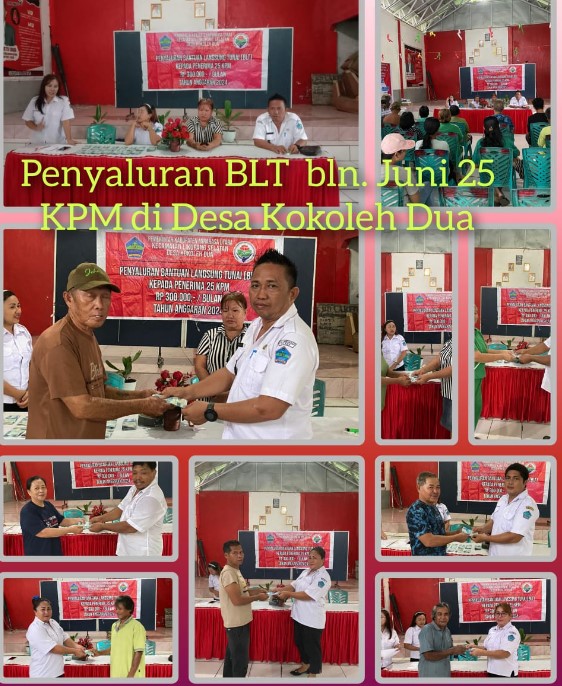 Hukum Tua Adry Logio menyalurkan Bantuan Langsung Tunai (BLT) kepada 25 Keluarga Penerima Manfaat (KPM) dan melakukan pembayaran honorarium bagi kader posyandu serta tunjangan kepada guru PAUD/TK untuk bulan Juni. Acara ini dilaksanakan di Kantor Desa Kokole Dua, Kecamatan Likupang Selatan, Kabupaten Minahasa Utara, pada Rabu, 19 Juni.