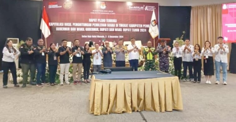 IKNews, MINUT – Komisi Pemilihan Umum (KPU) Kabupaten Minahasa Utara (Minut) mengumumkan hasil rekapitulasi perhitungan suara tingkat kabupaten dalam rapat pleno terbuka yang dilaksanakan di Sutan Raja Hotel, pada Rabu (04/12/2024).
