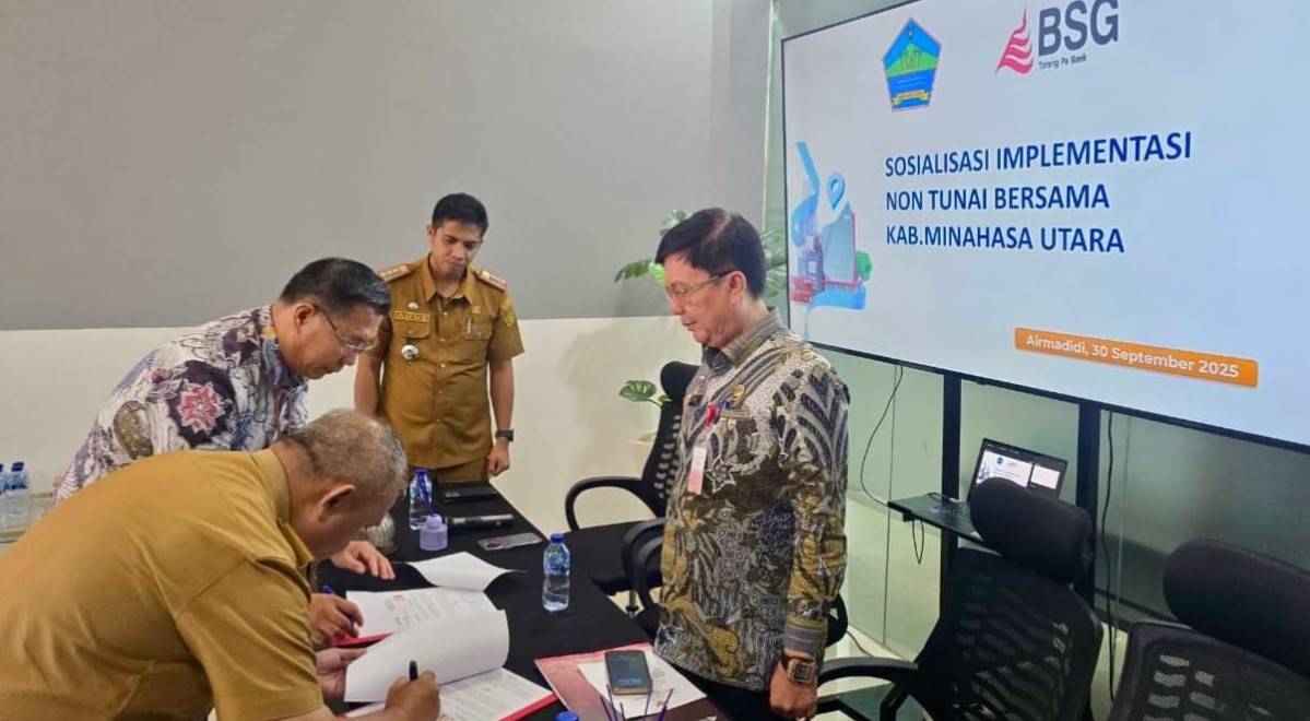 IKNews, MINUT – Kabupaten Minahasa Utara terpilih sebagai daerah pertama di Sulawesi Utara yang akan menerapkan transaksi non tunai dalam pengelolaan keuangan desa. Pilihan ini diambil oleh Bank SulutGo (BSG) sebagai bagian dari upaya digitalisasi dan modernisasi tata kelola keuangan pemerintah desa.