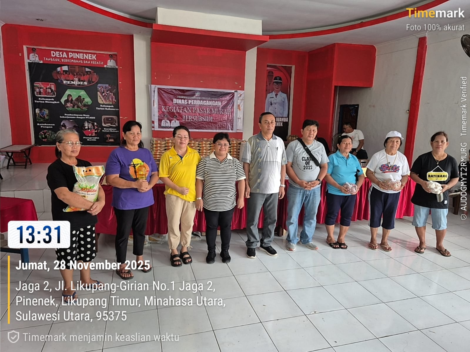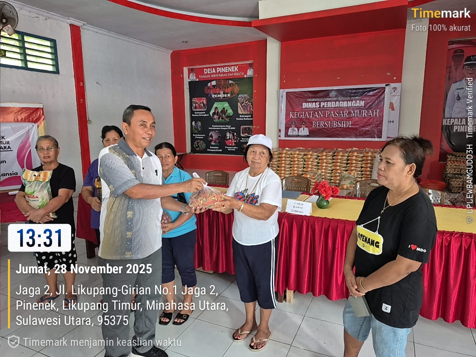 Gambar: Warga Desa Pinenek antusias menyerbu Pasar Murah Bersubsidi yang digelar Dinas Perdagangan Minahasa Utara, Jumat, 28 November 2025. Foto: Dinas Perdagangan Minut. Foto : Denny/IKN.