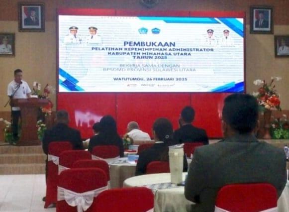 IKNews, MINUT – Pelatihan Kepemimpinan Administrator Kabupaten Minahasa Utara (Minut) Tahun 2025 dibuka, bekerja sama dengan BPSDMD Sulut, di Aula Integritas Watutumou, Rabu (26/02/2025).