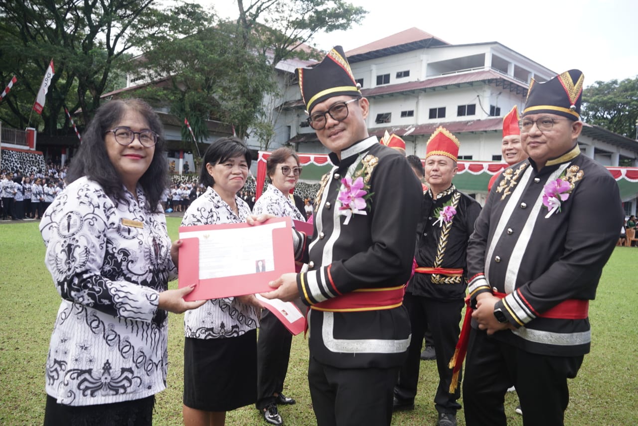 Kedua pemimpin daerah tersebut hadir mengenakan pakaian adat, sebagai bentuk penghormatan yang tinggi kepada para guru yang dianggap sebagai pilar penting dalam membangun masa depan bangsa, khususnya di Minahasa Utara.