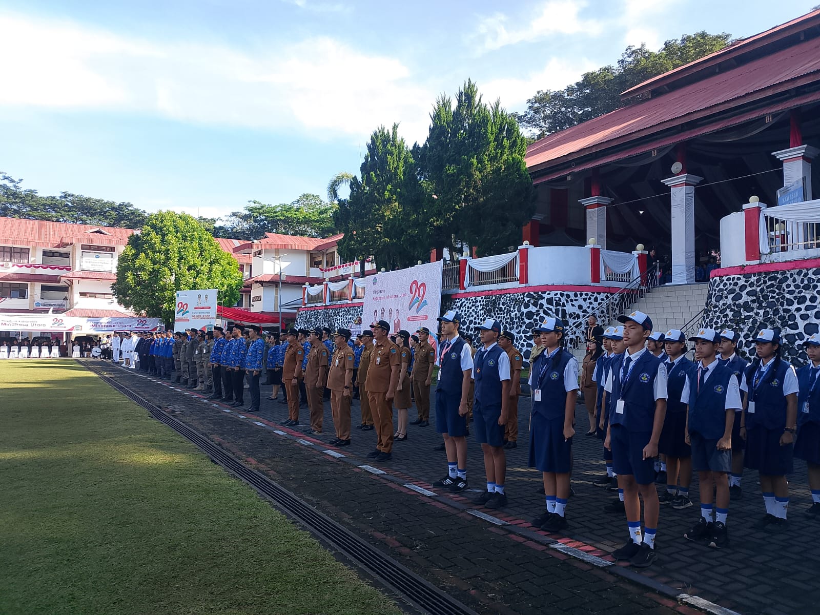 Dari pantauan di lokasi, barisan peserta upacara tampak rapi sementara petugas pengibar bendera memegang peran penting dalam rangkaian peringatan yang digelar tahunan ini. Bupati Minahasa Utara, Joune Ganda, memimpin langsung jalannya upacara dengan suasana yang berjalan tenang dan tertib.