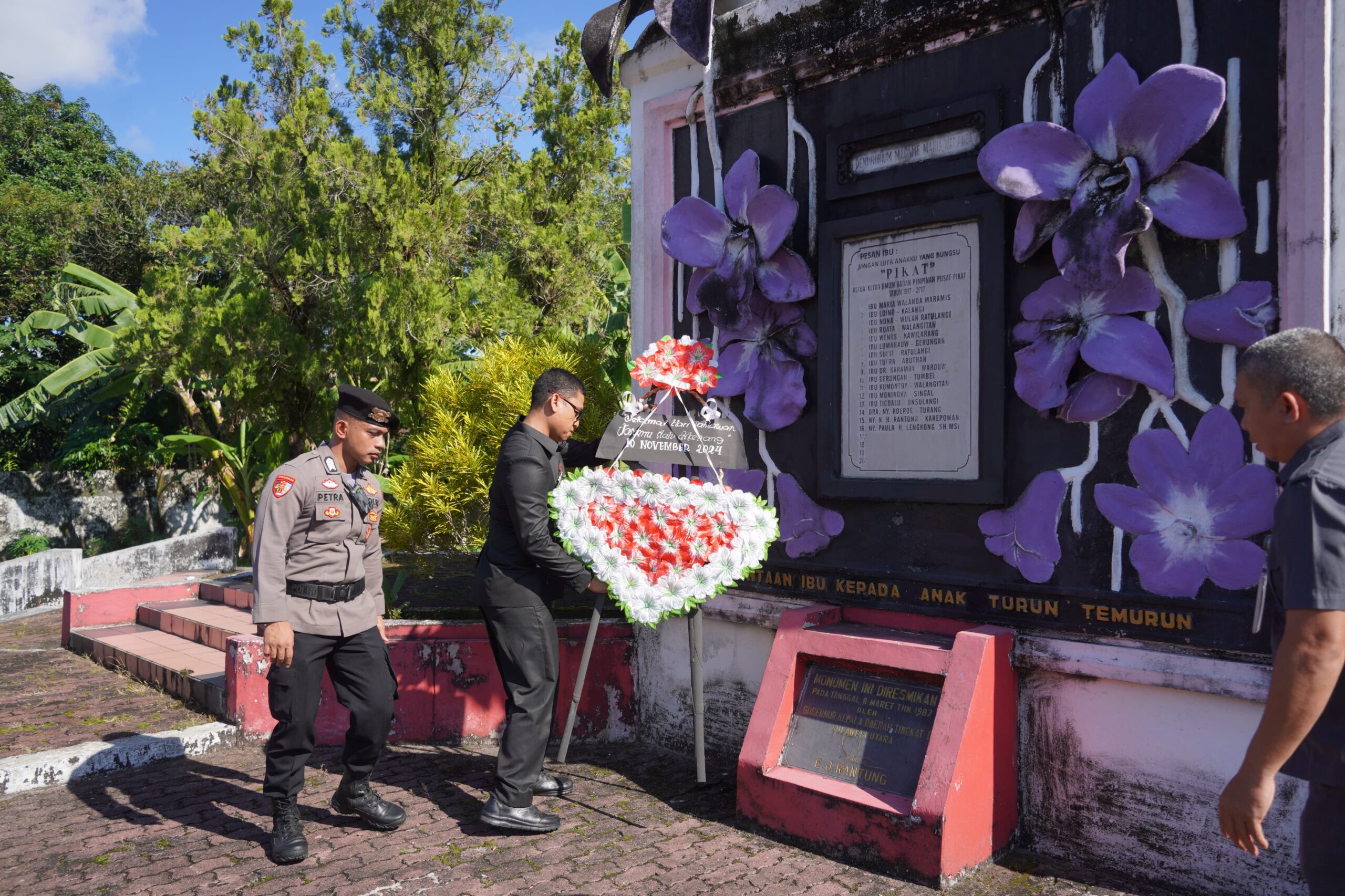 Pemerintah Kabupaten Minahasa Utara PJs Bupati Reza Dotulung menggelar upacara dan berziarah di Taman Makam Pahlawan (TMP) Maria Walanda Maramis di desa Maumbi, Minggu (10/11/24).