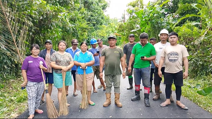 Pantauan wartawan di lokasi, aktivitas berlangsung tanpa seremoni: perangkat desa, BPD, Linmas hingga warga terlihat membawa parang dan sapu lidi, membersihkan rumput liar dan endapan tanah yang mengganggu akses jalan.