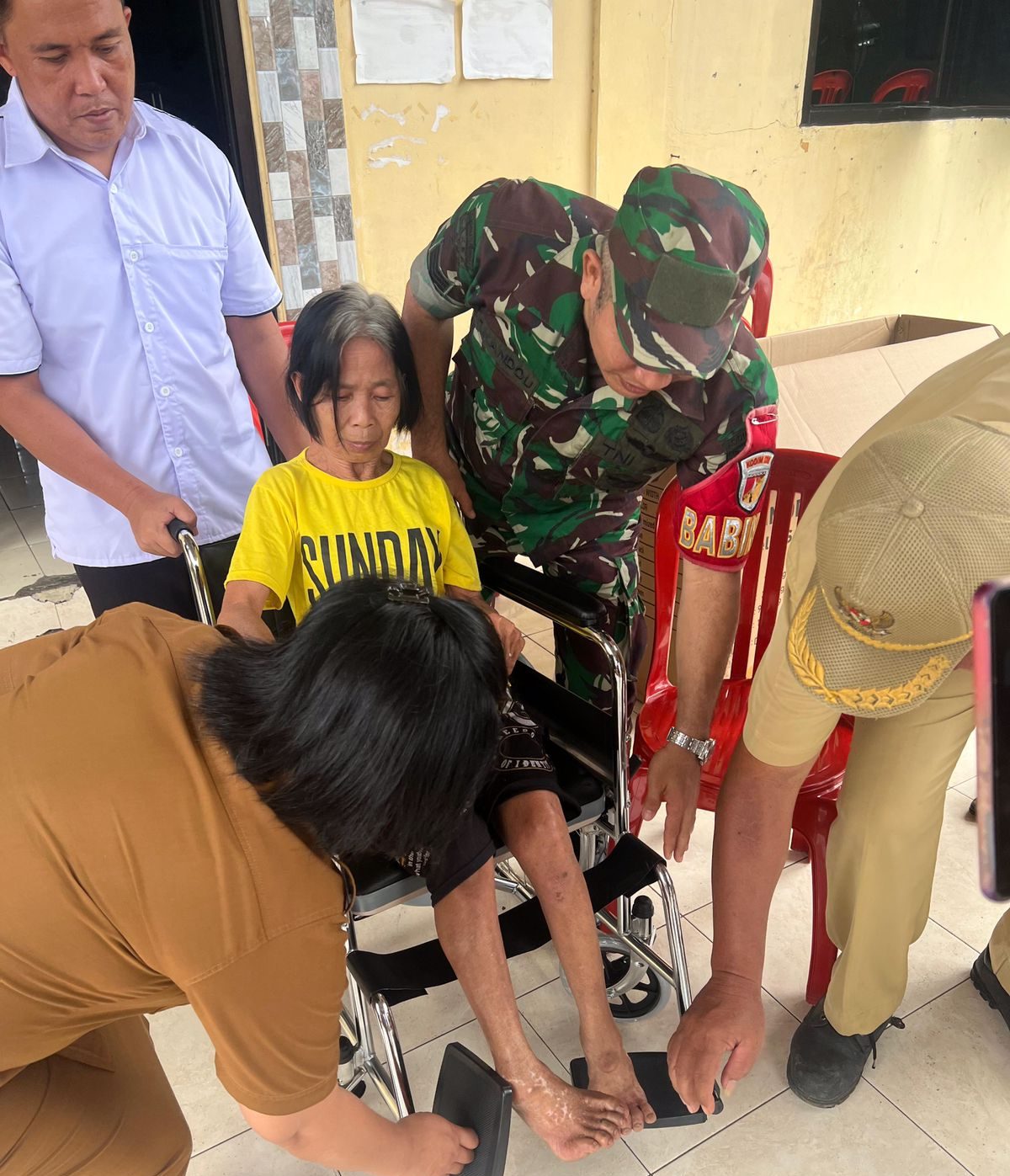 IKNews, MINAHASA UTARA – Bintara Pembina Desa (Babinsa) Desa Mapanget Koramil 1310-04/Dimembe Kodim 1310/Bitung, Serka Hence Kandouw, mendampingi penyerahan kursi roda oleh Dinas Sosial Kabupaten Minahasa Utara kepada penyandang disabilitasi warga Desa Mapanget, bertempat di Balai Desa Mapanget, Kecamatan Talawaan Kabupaten Minahasa Utara, Selasa (25/06/2024).