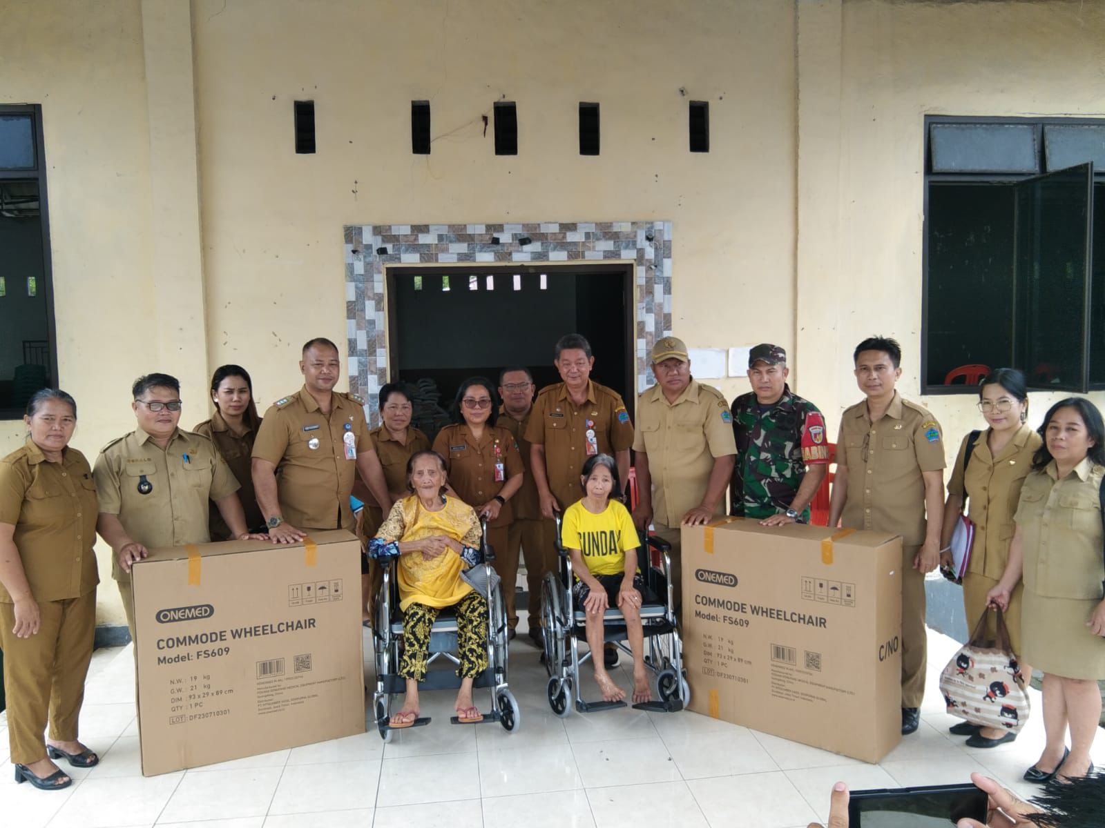 Bantuan kursi roda penyandang Disabilitas lumpuh tersebut diserahkan oleh Kadis Sosial Minut Arnolus Didik Wolajan, S.STP, MM., kepada penerima bantuan kursi roda atas nama Ibu Sandruna Sumakud dan Ibu Dorce Sirojan.