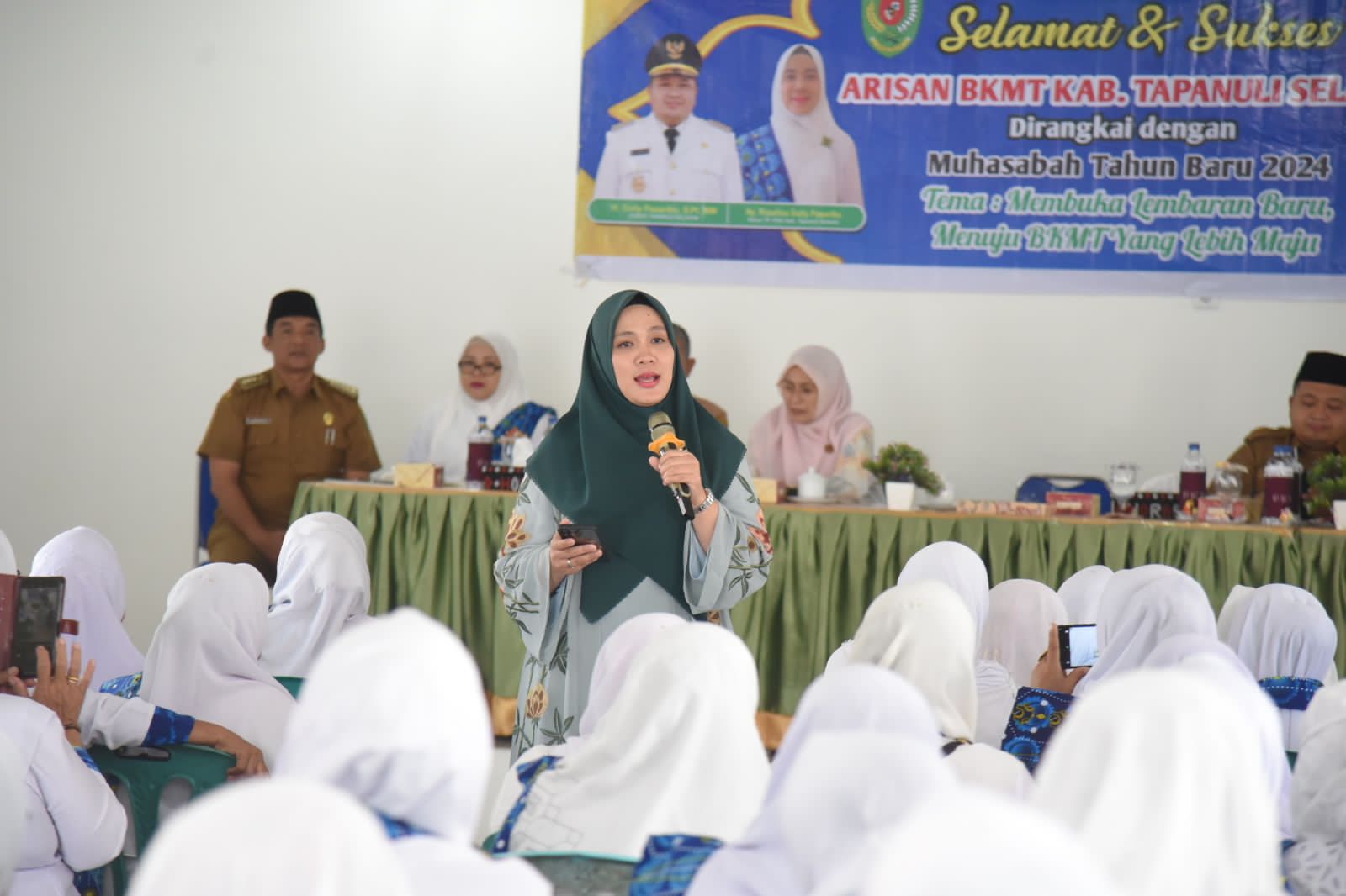 IKNews, TAPSEL – Bupati Tapanuli Selatan (Tapsel) Dolly Pasaribu didampingi Ketua Tim Penggerak (TP) Pemberdayaan Kesejahteraan Keluarga (PKK) Kabupaten Tapanuli Selatan (Tapsel) menghadiri Arisan BKMT Kabupaten Tapanuli Selatan di Aula Kantor Camat Sipirok, Senin (5/2).