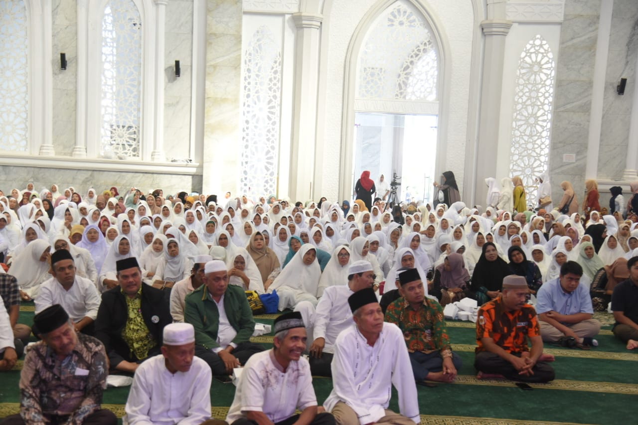 Acara dilanjutkan dengan tausiah oleh Al-Ustadz Ahmad Sanjaya S.Pdi dan dihadiri, Forkopimda Tapsel, Sekda Tapsel, Pimpinan OPD, stakeholder, ASN Tapsel, OKP, Ormas Islam, dan ribuan jamaah.