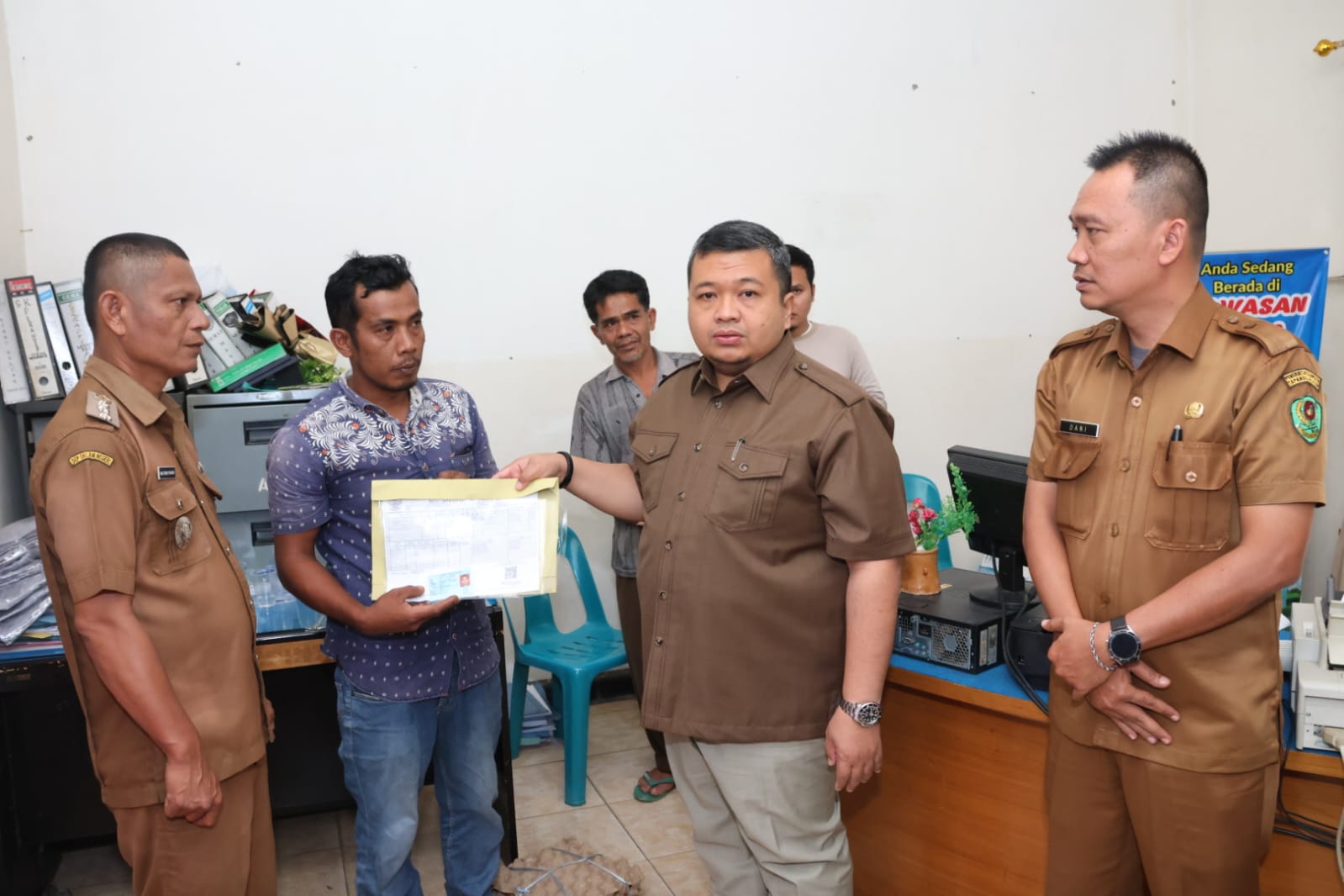 Bupati didampingi Kaban Kesbangpol, Camat Angkola Barat, Kabid Linjamsos (Dinas Sosial Tapsel), dan Lurah Simatorkis.